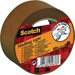 - Ideal for sealing envelopes and packages, this Scotch non-siliconised paper mailing tape features high initial adhesion for secure mailing. The paper tape tears by hand for easy use in mailrooms, offices and at home. The brown tape measures 50mm x 50m. This pack contains 1 roll of tape.
