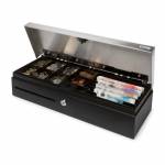 The SD-4617S cash drawer is made of a robust steel casing and shatterproof PVC tray. Designed to meet the needs of medium-traffic venues such as school and office cafeterias and clubhouse canteens. Slam-proof latch mechanism guaranteed to provide at least 1 million trouble-free open/close cycles. With a narrow form factor it is easy to use in any environment, whether the operator is seated or standing. Lid opens 80? for easy access without bending or twisting.