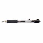 - High-quality retractable gel pen with a soft rubber grip and transparent barrel.